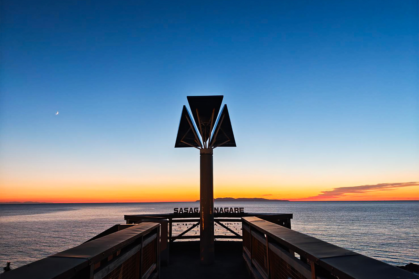 建物から道路上に架かるサンセットブリッジで見る笹川流れの夕日は格別です。